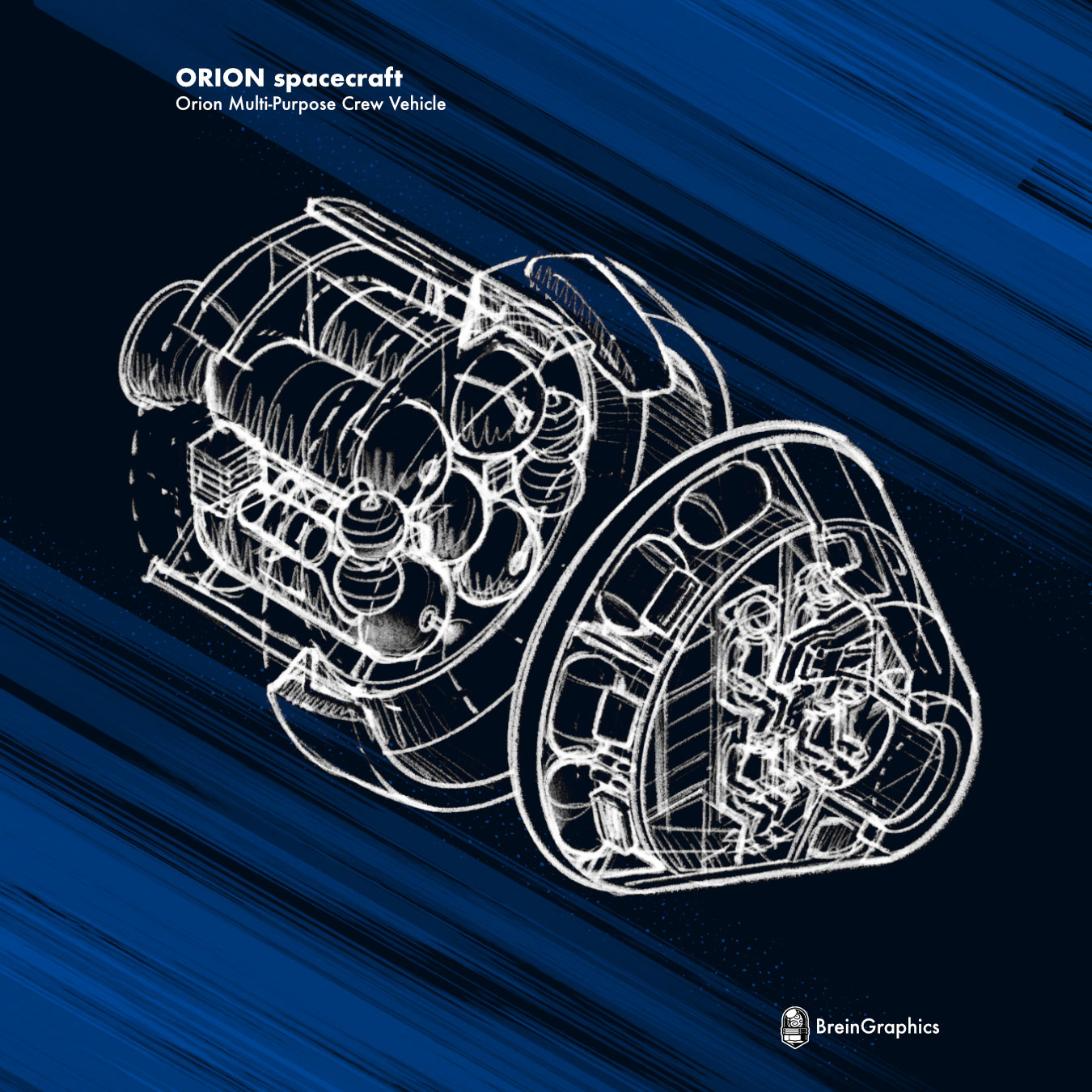 On the april 1st at 6:35 pm the Artemis II Mission launched from Kennedy Space Center, taking four astronauts on a trip around the Moon! Their vehicle of choice for this flight is the ORION spacecraft, consisting of a NASA Crew Module space capsule that is paired with a ESA European Service Module. To commemorate the occasion, I made this cutaway illustration, showing the inner workings of the major components. Enjoy!